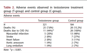 – Entre essas mortes apenas 44% delas foram devido a doenças cardiovasculares no grupo em uso da testosterona. Já no grupo controle 100% das mortes estavam ligadas a doenças cardiovasculares.